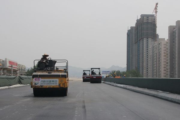 5月8日上午,二環(huán)南(西段)四標(biāo)進(jìn)行橋面防水瀝青施工試驗(yàn)段攤鋪。此次試驗(yàn)段長260米、寬11.75米,面積3055平方,防水找平層瀝青砂厚2厘米。