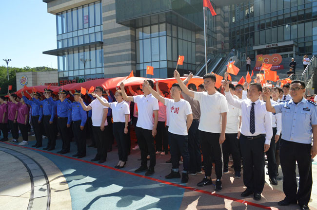 宣誓完畢后,所有人共同合唱《沒有共產黨就沒有新中國》,伴隨著嘹亮的歌聲,一面黨旗在隊伍上面緩慢展開,站在黨旗下,很多黨員眼泛淚花,內心的自豪感油然而生,感謝偉大的黨、偉大的祖國為我們創造了這么美好的幸福生活,這也把整個活動推向了高潮。