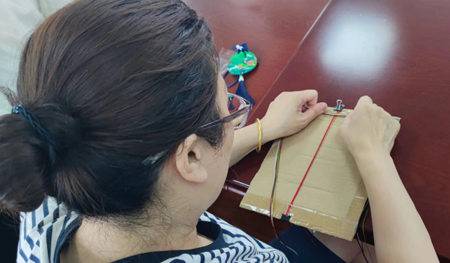 五色絲線系臂、佩香囊是端午節傳統習俗之一。在專業老師的指導下,細細的彩線在職工們的手指間飛舞,變成了手腕上一條條漂亮的五彩繩。
